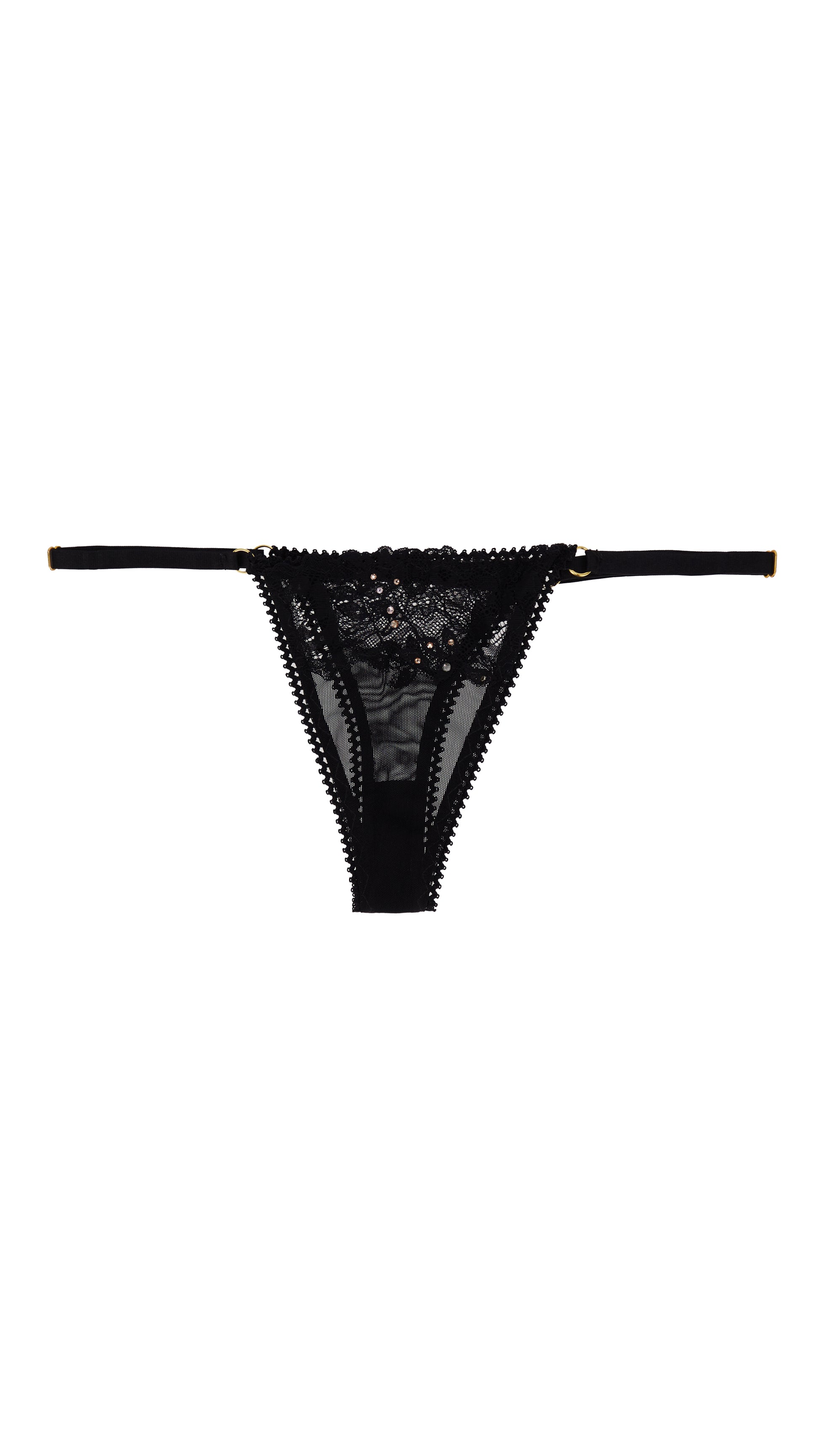 Timeless and sexy, the cleopatra Strap Thong exudes’ s opulence. The Italian satin straps gently embrace the body, whilst the sustainable lace reveals glimpses of the skin beneath leaving just enough to the imagination. Handcrafted with Crystal in champagne