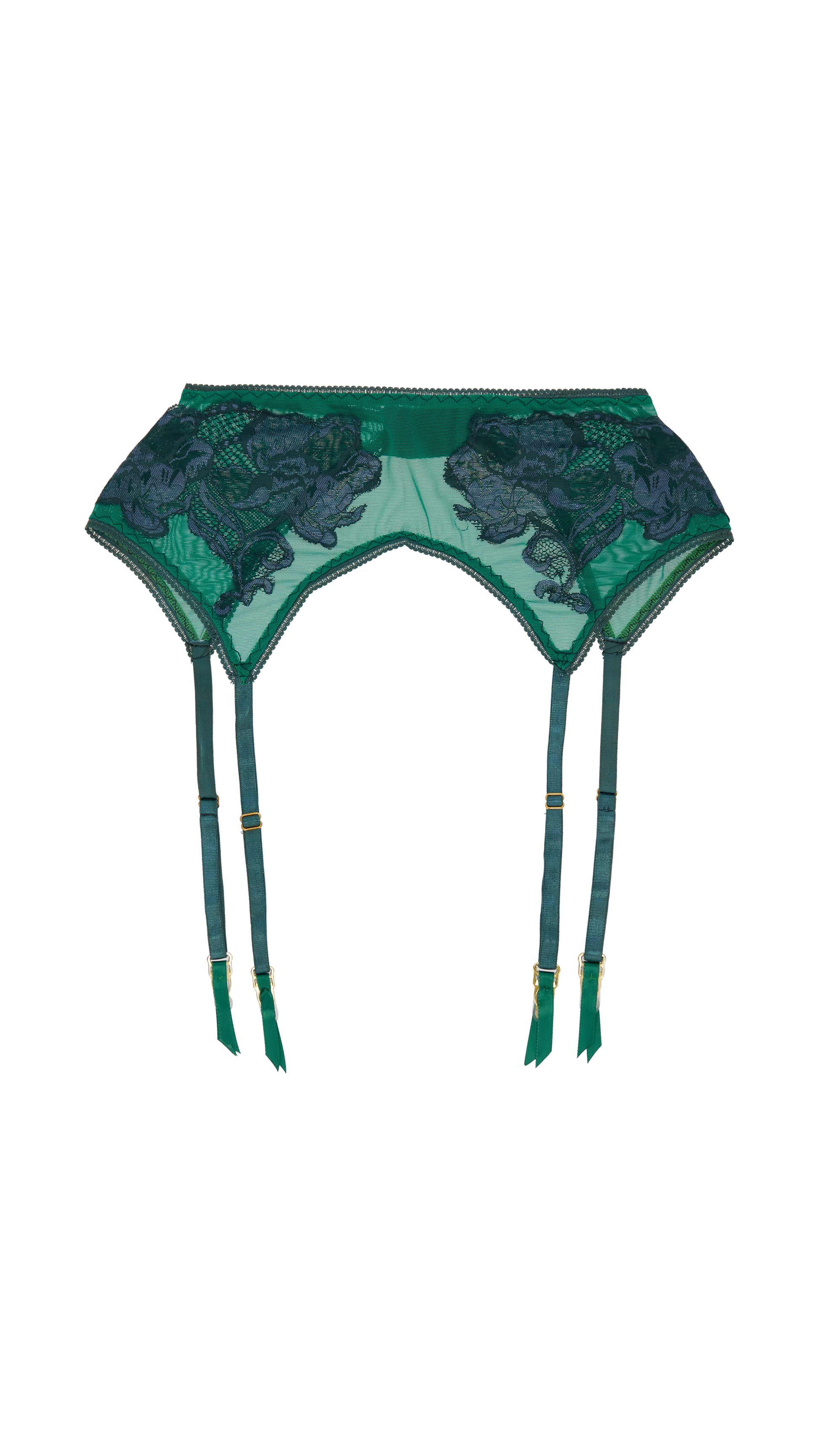 Add a touch of sensuality to your Clio Set with the Clio Garter Belt. The bespoke forest green lace and stretch mesh waistband gently wraps around the body… Known for our sublime fit, the Clio garter belt features adjustable Italian satin straps and a hook & eye fastening to ensure the perfect luxury fit