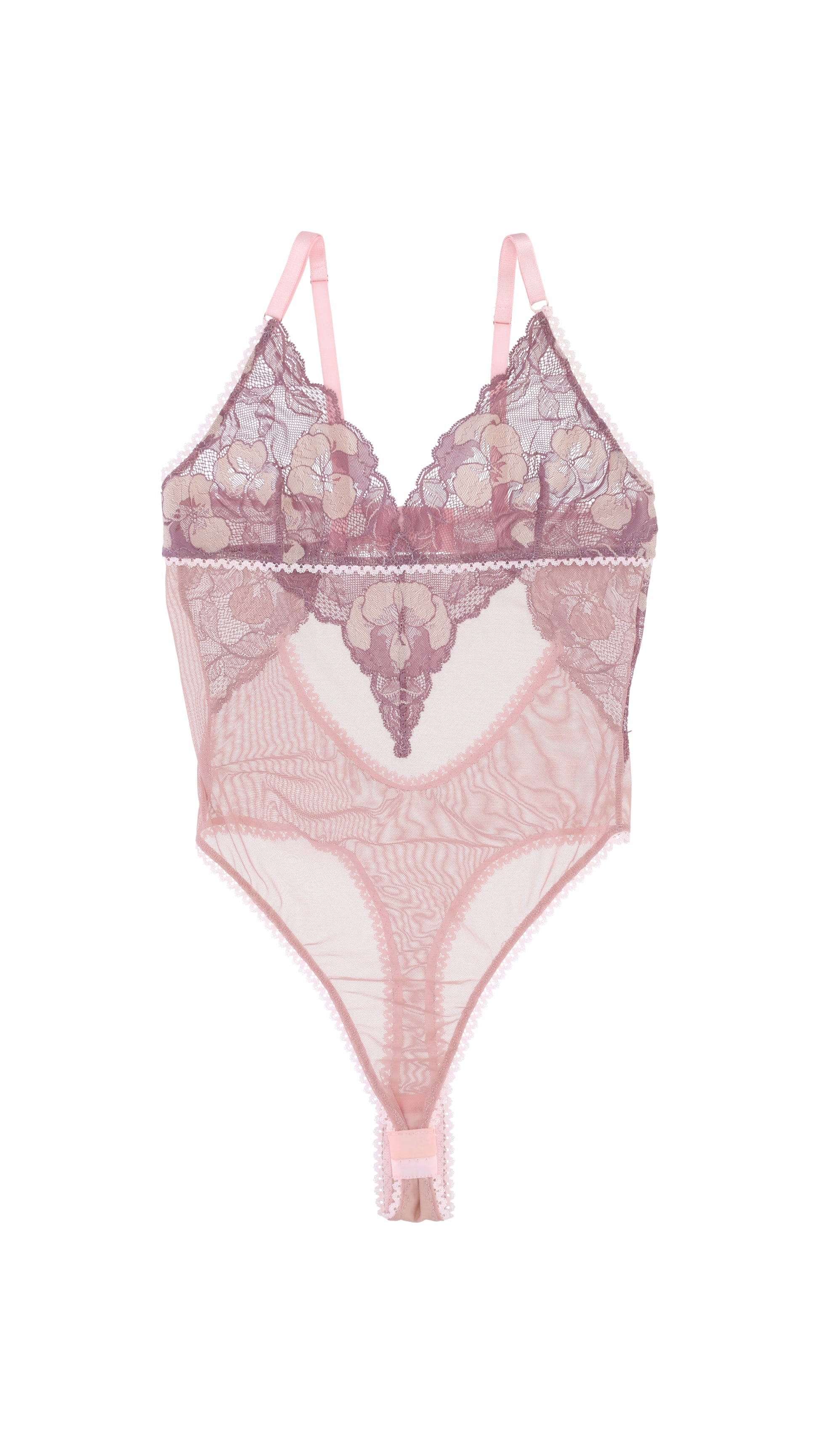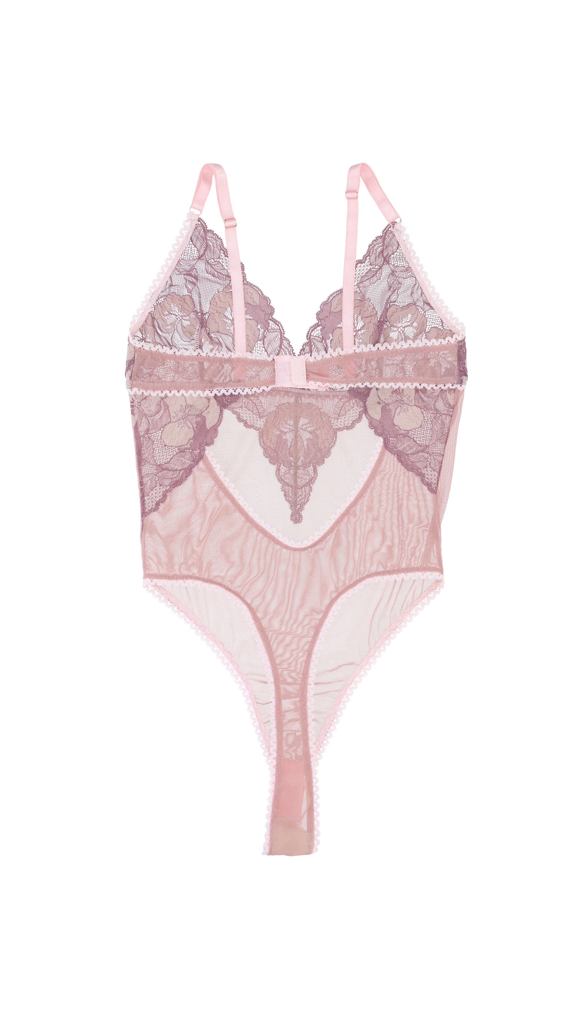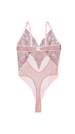 Elegant and empowering. This blush-and-white bodysuit hugs your curves with precision, offering breathable stretch mesh and intricate lace for a sculpted silhouette.