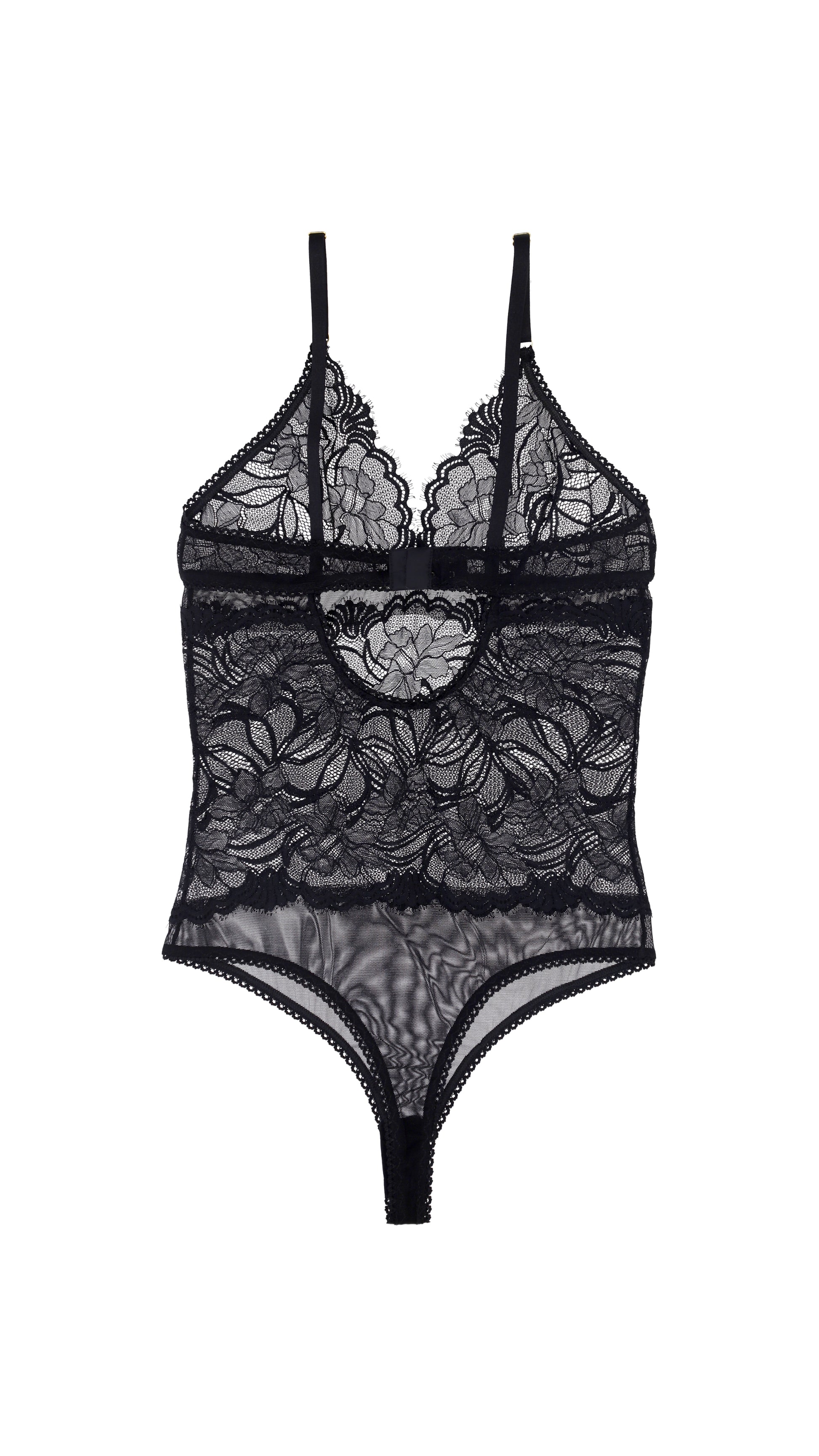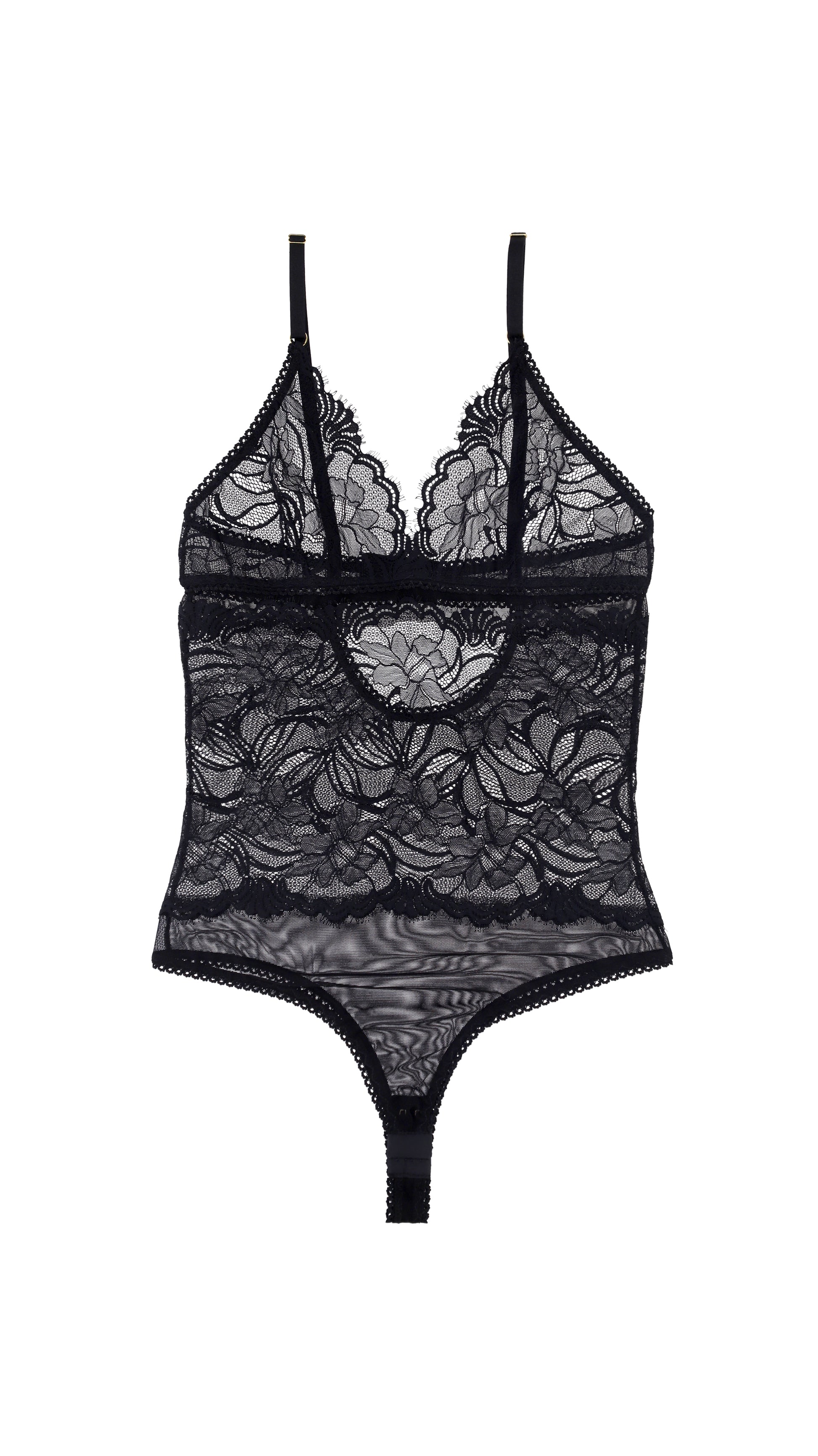 Sensual and empowering, the Erato Bodysuit features sculpted black lace and eco-mesh that clings perfectly to your shape. Ideal for bold women who want a daring statement.