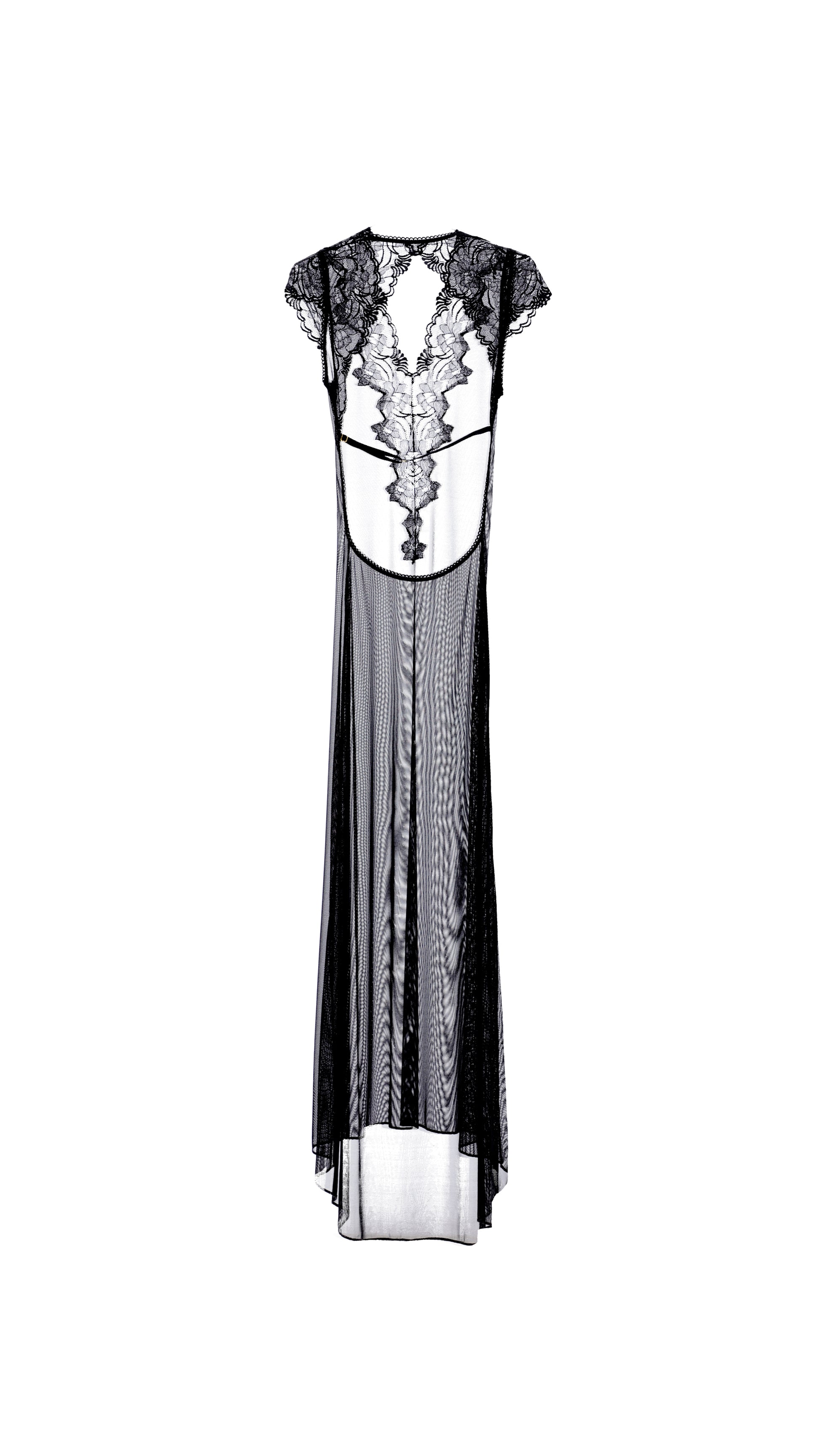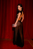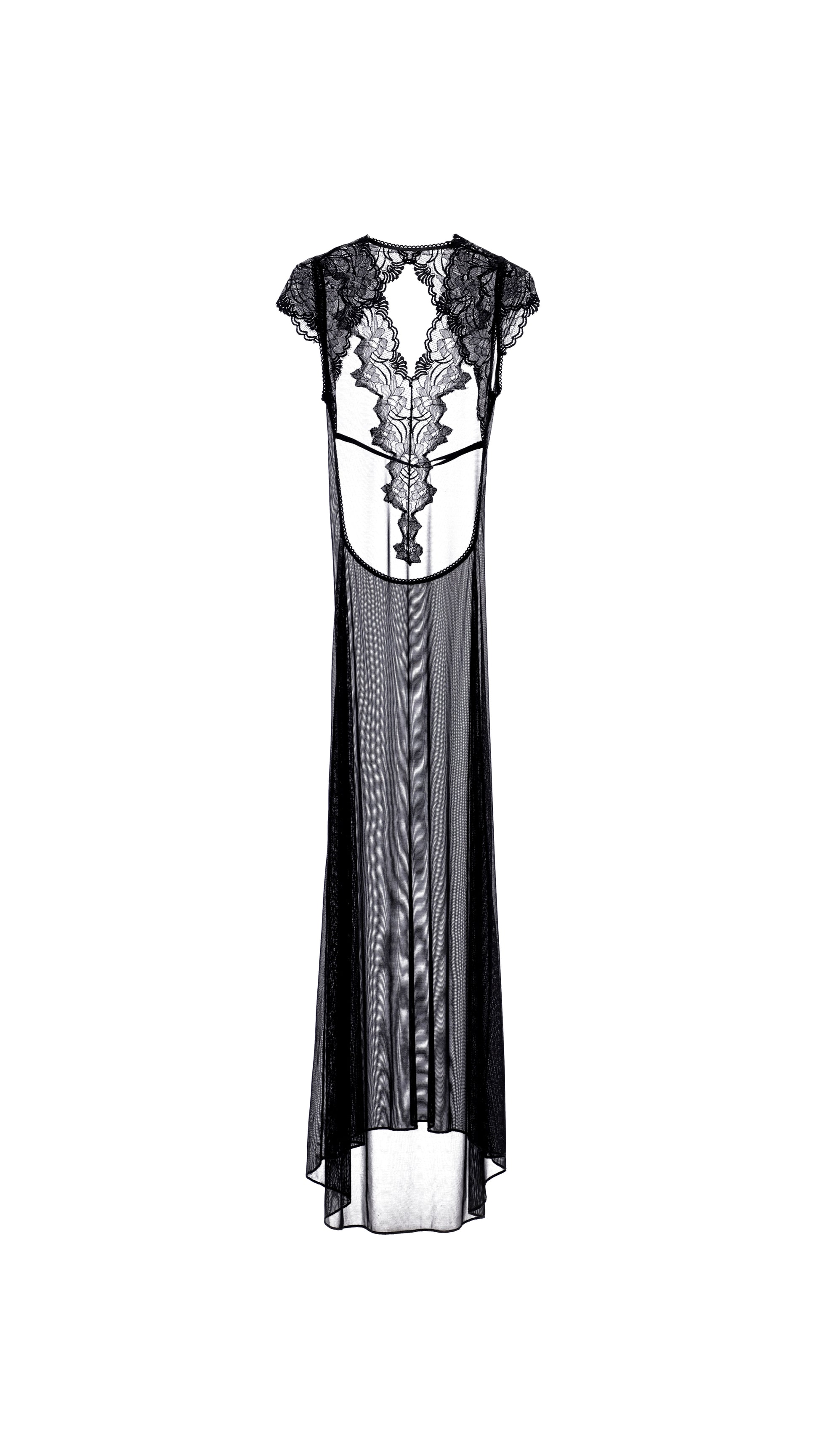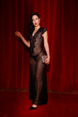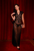Designed to command attention. This black lace and mesh long dress hugs the body while revealing your silhouette with grace. Bold, feminine, and unforgettable.