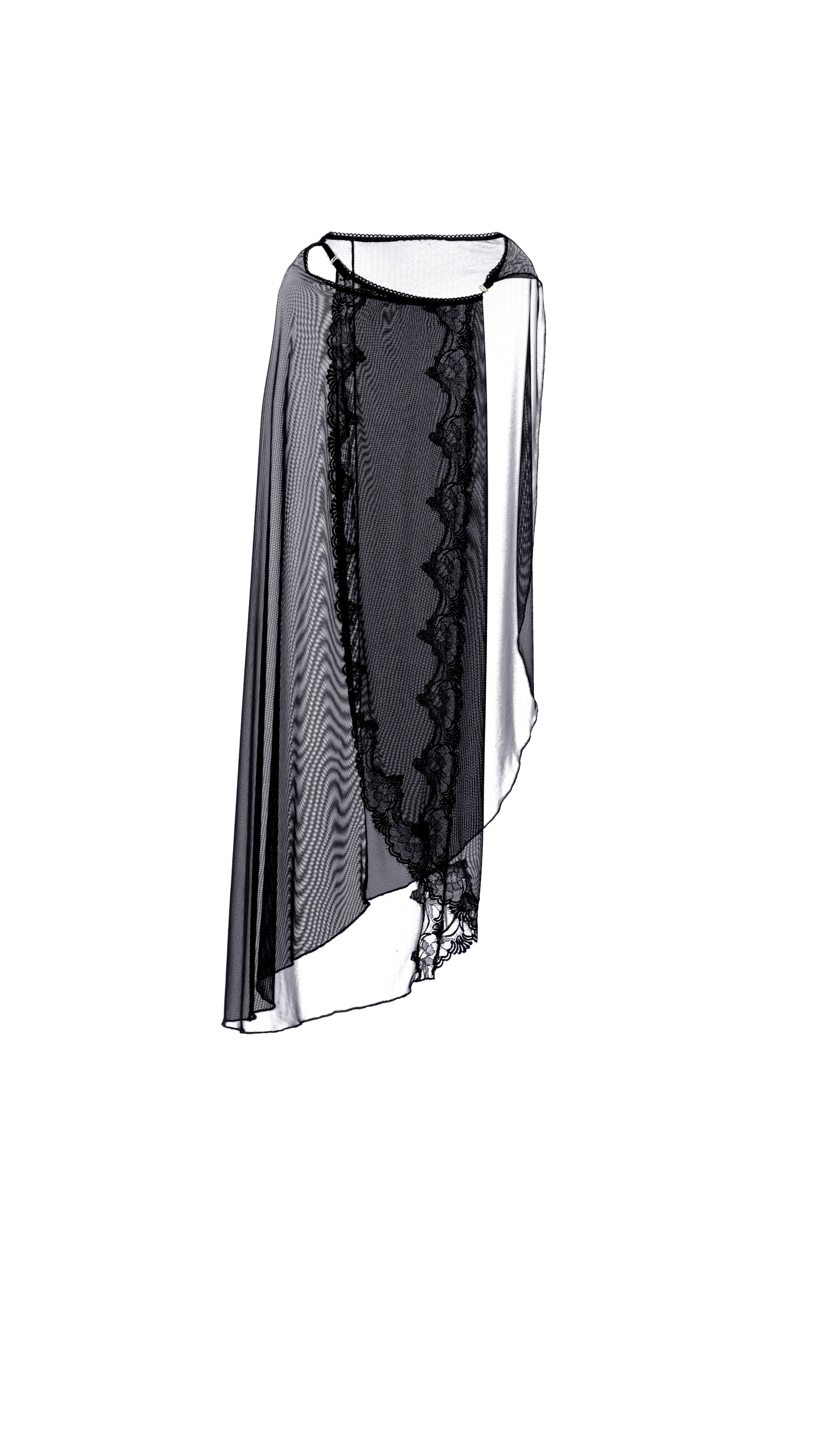 A statement of elegance and mystery. This semi-sheer long skirt adds fluid motion to your look, with a soft drape and subtle flare.