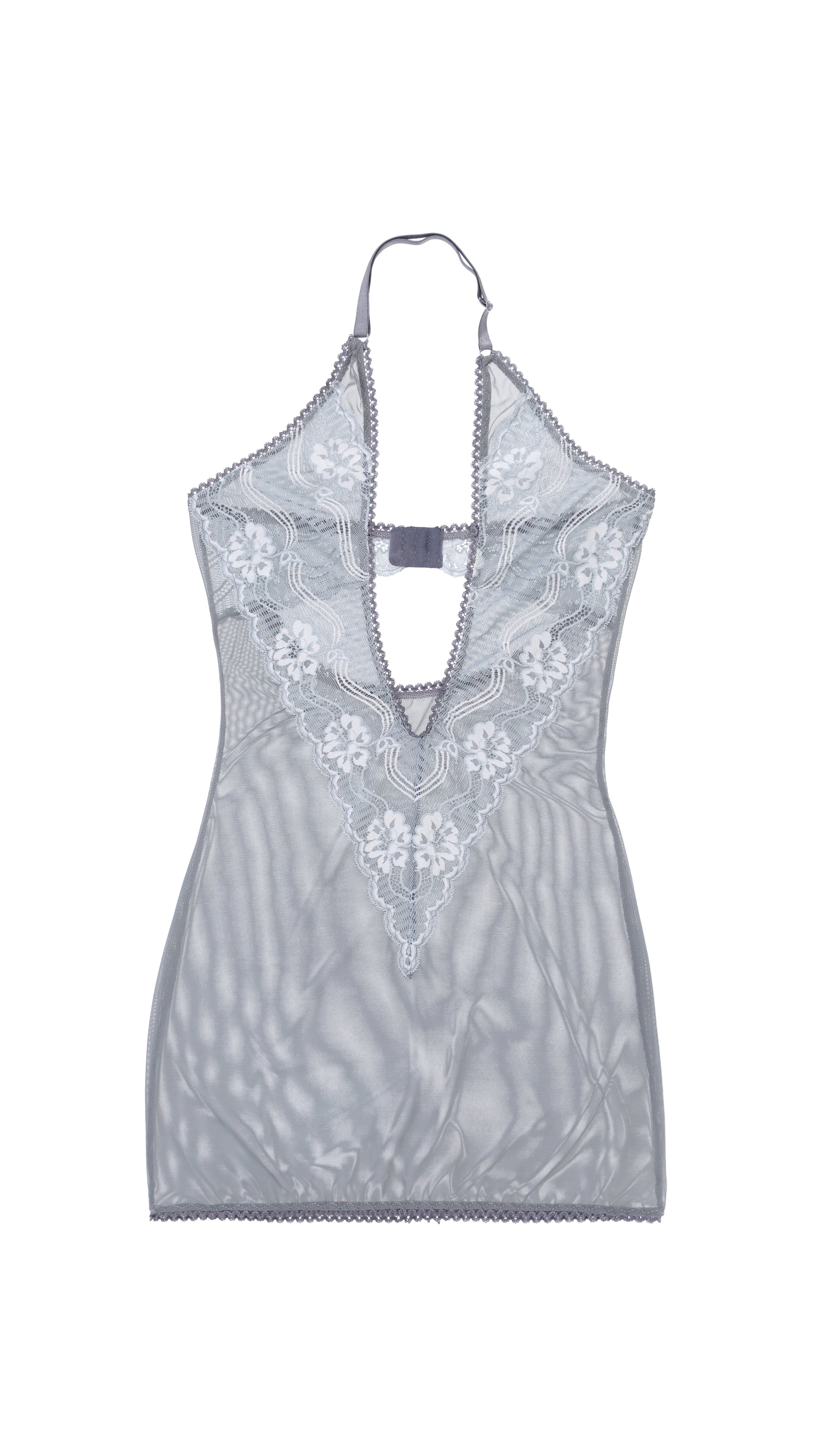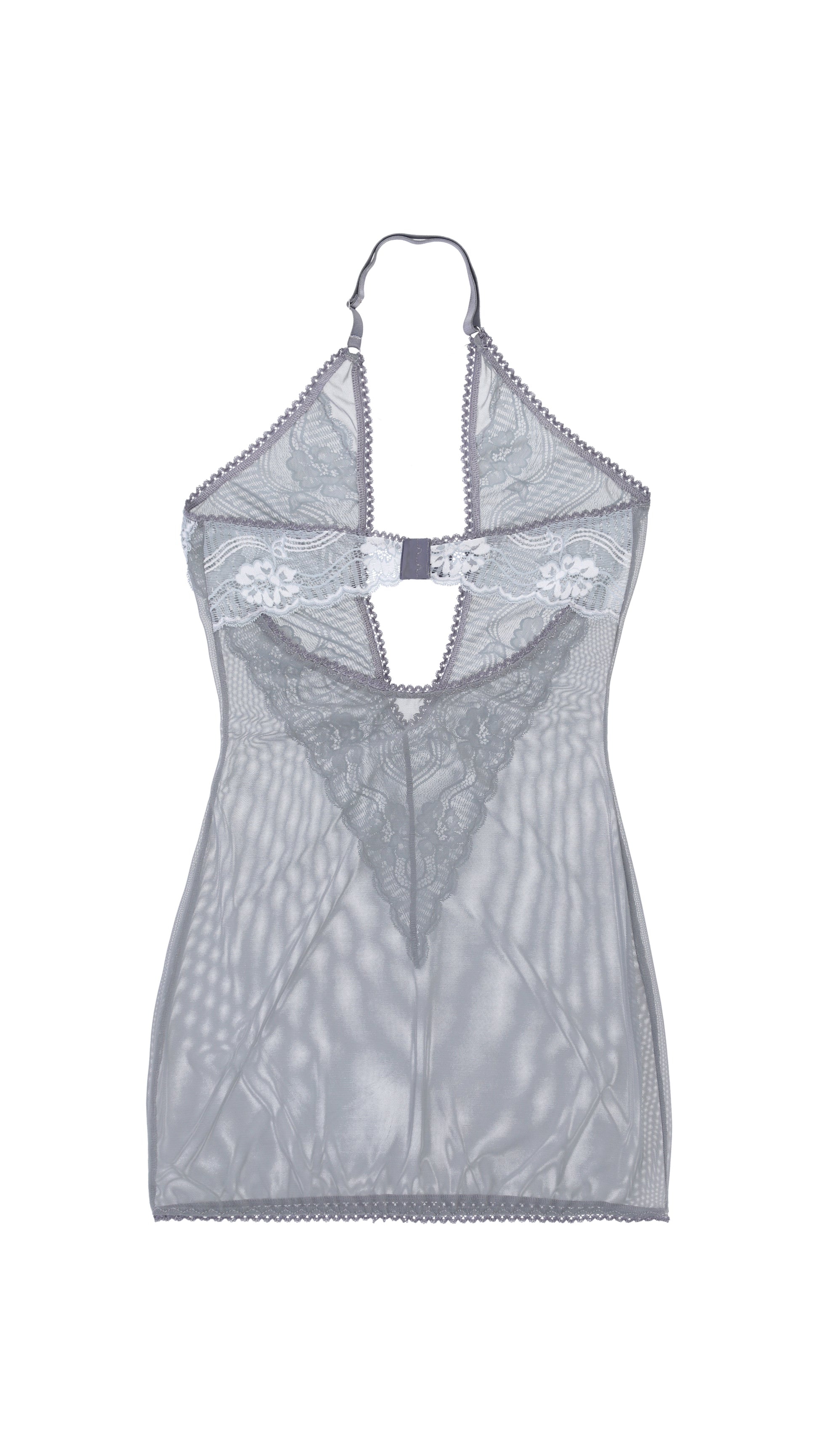 Soft and enchanting, the Euterpe Babydoll features sheer grey-and-white mesh and delicate lace details that flow gently over your curves. A timeless piece for the woman who wants to feel graceful and confident.