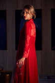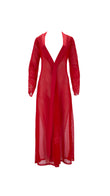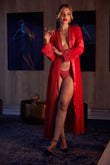 Sumptuous long Isis Robe adorns the figure in this classic red piece, set to complete any luxurious lingerie look. Crafted using the finest lingerie techniques, appliqued sustainable lace is hand cut away from the demonstrating true craftsmanship...