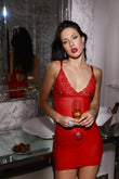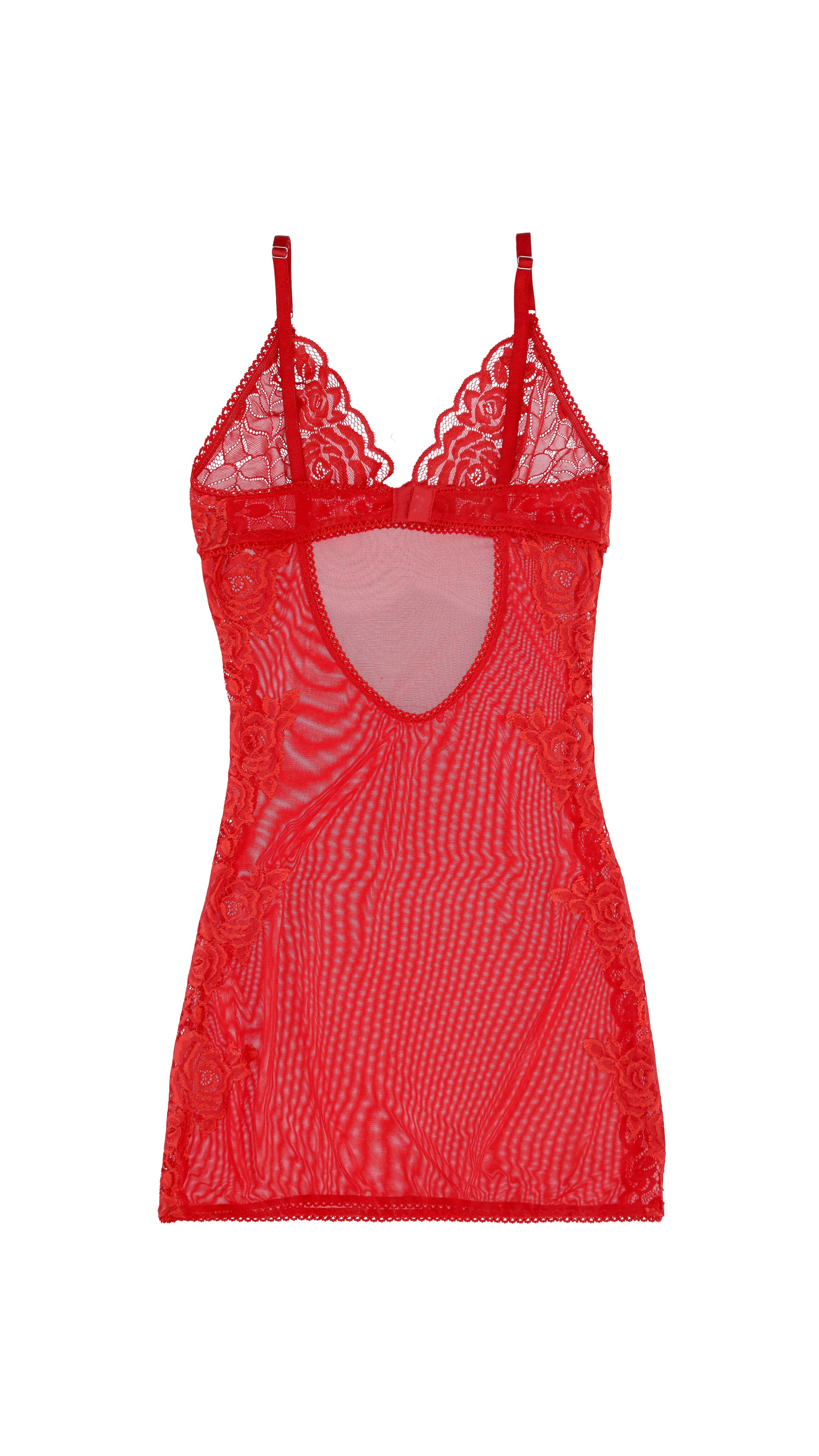 Romantic, fluid, and fiery. The Rhea Babydoll is crafted from soft red mesh and intricate lace that gently glides over the body while showing just enough skin. Ideal for women who love a flirty yet elegant look.