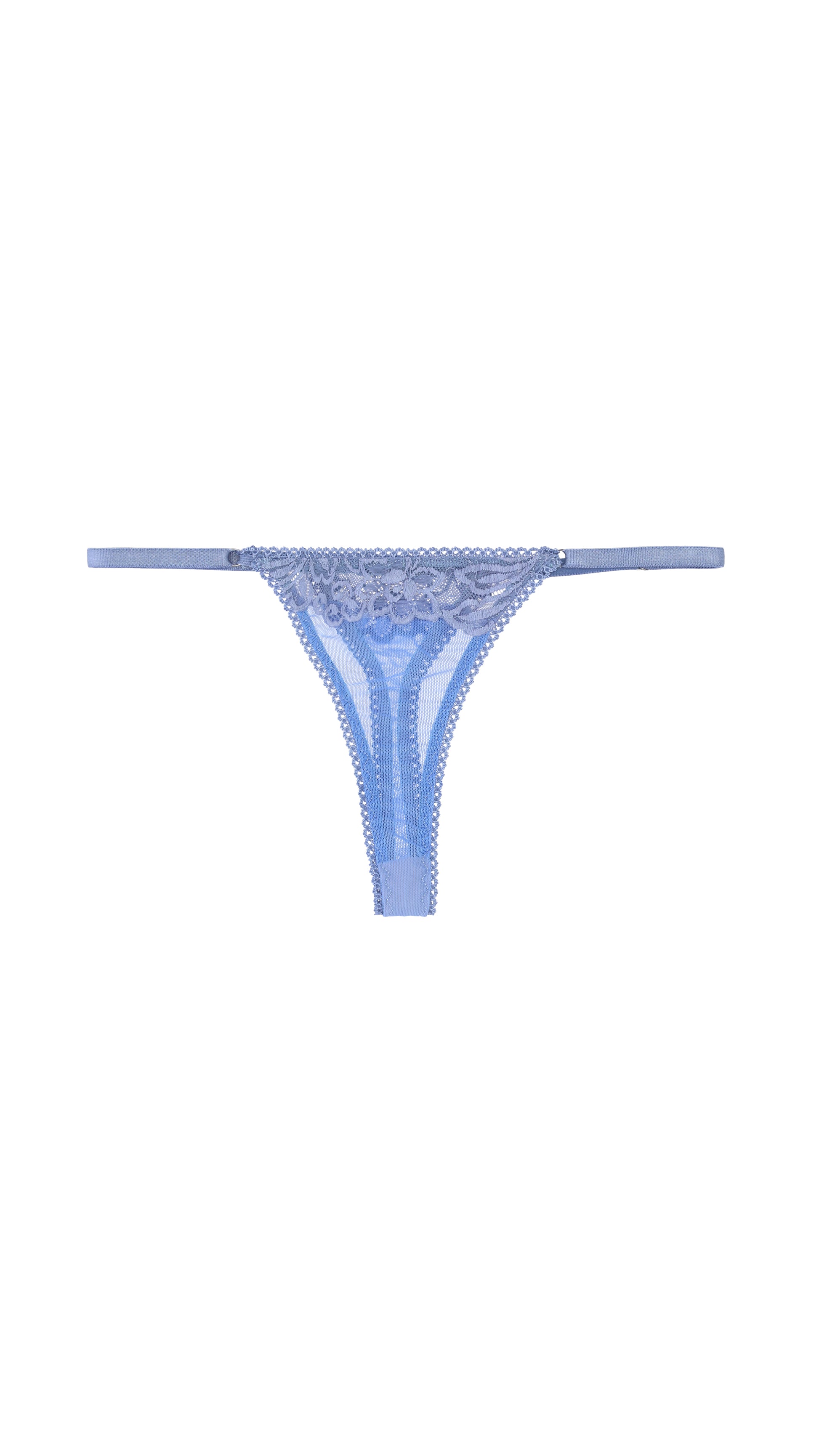 Minimal and mesmerizing. The Selene Thong is made with light blue lace and stretch mesh for a seamless, flattering fit that feels as soft as it looks.