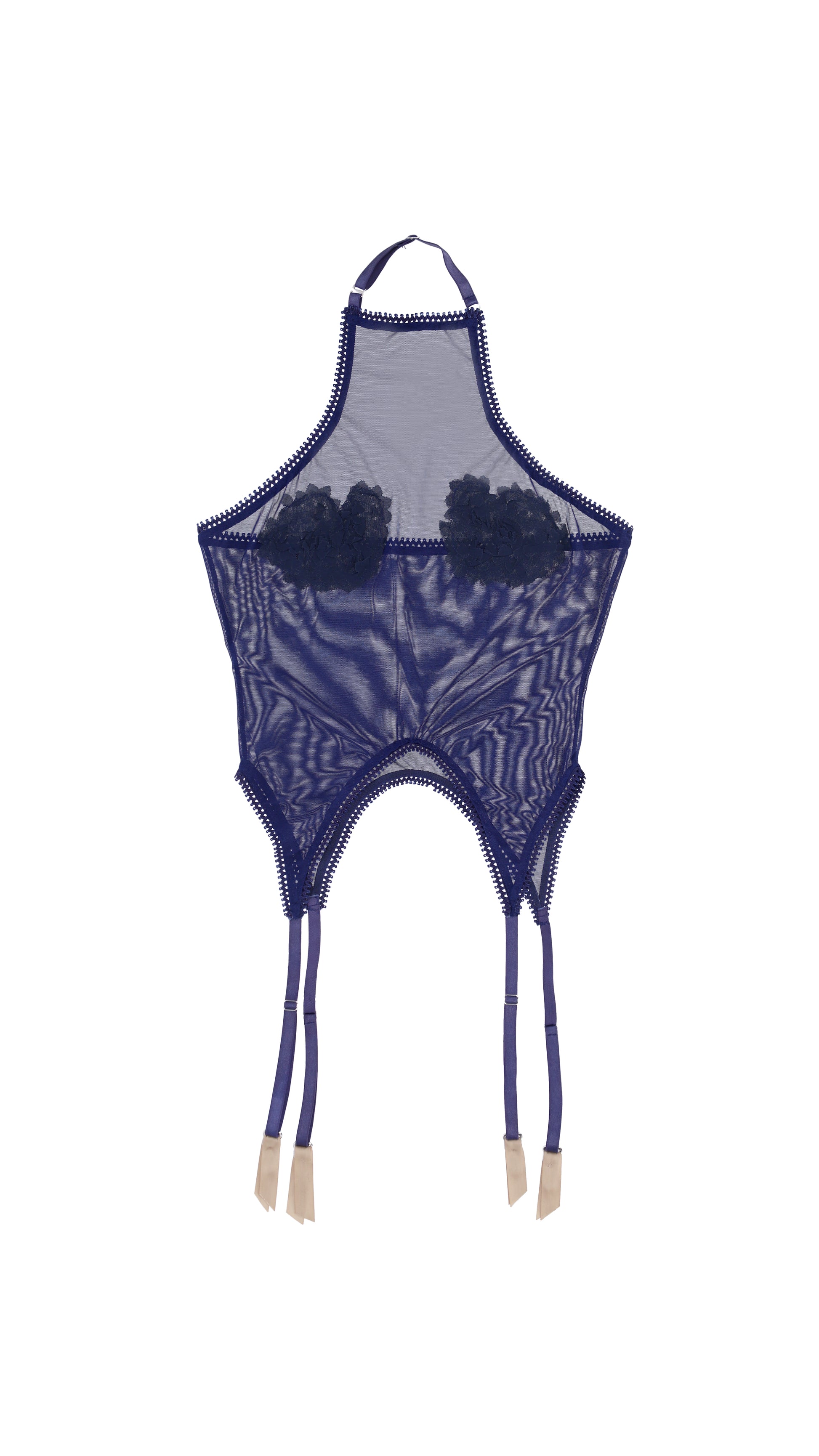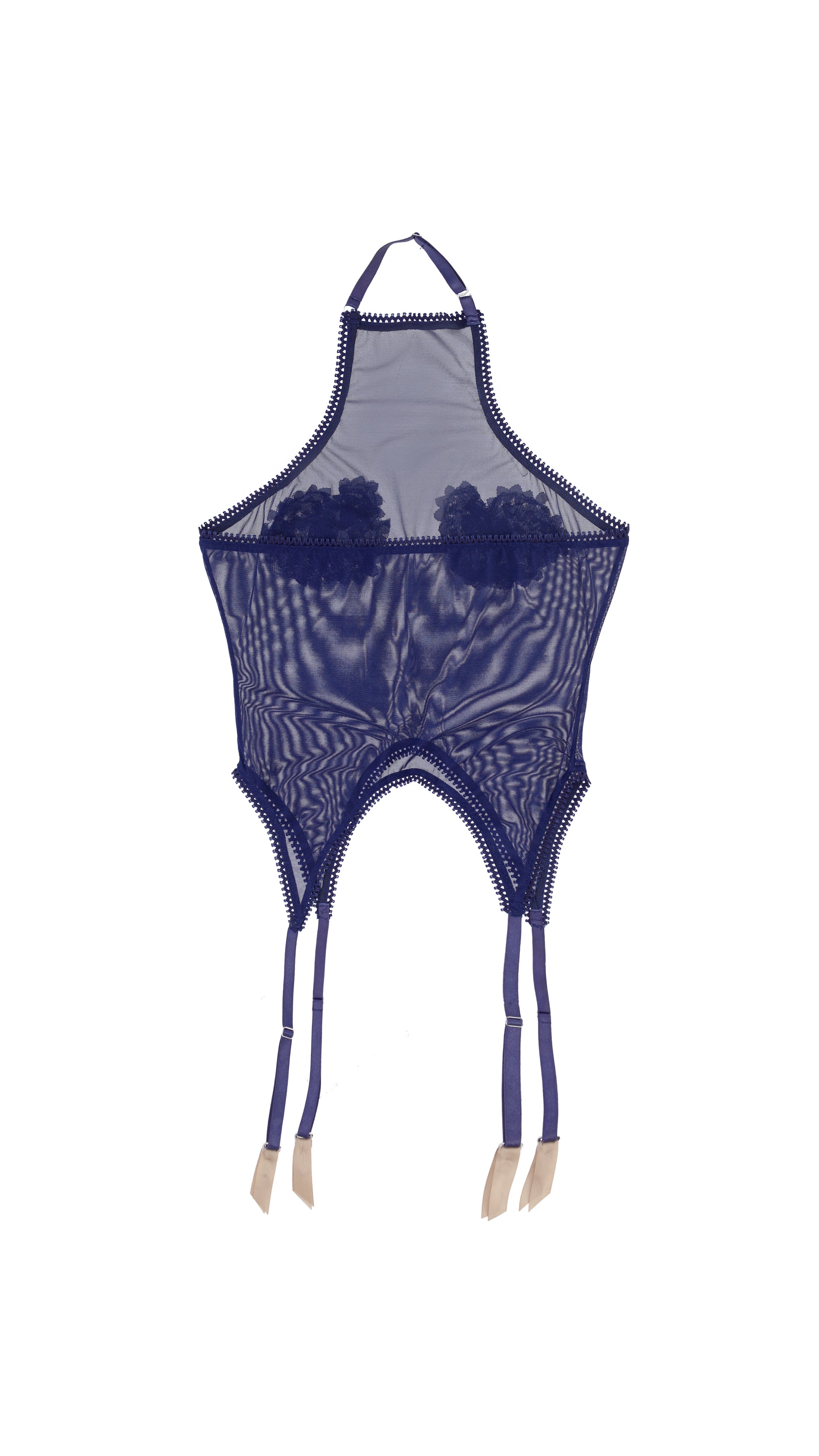 A refined twist on a classic seduction piece. The blue mesh Slip Garter cinches the waist and enhances your legs with soft straps and delicate detailing. Comfortable and captivating Thong Included