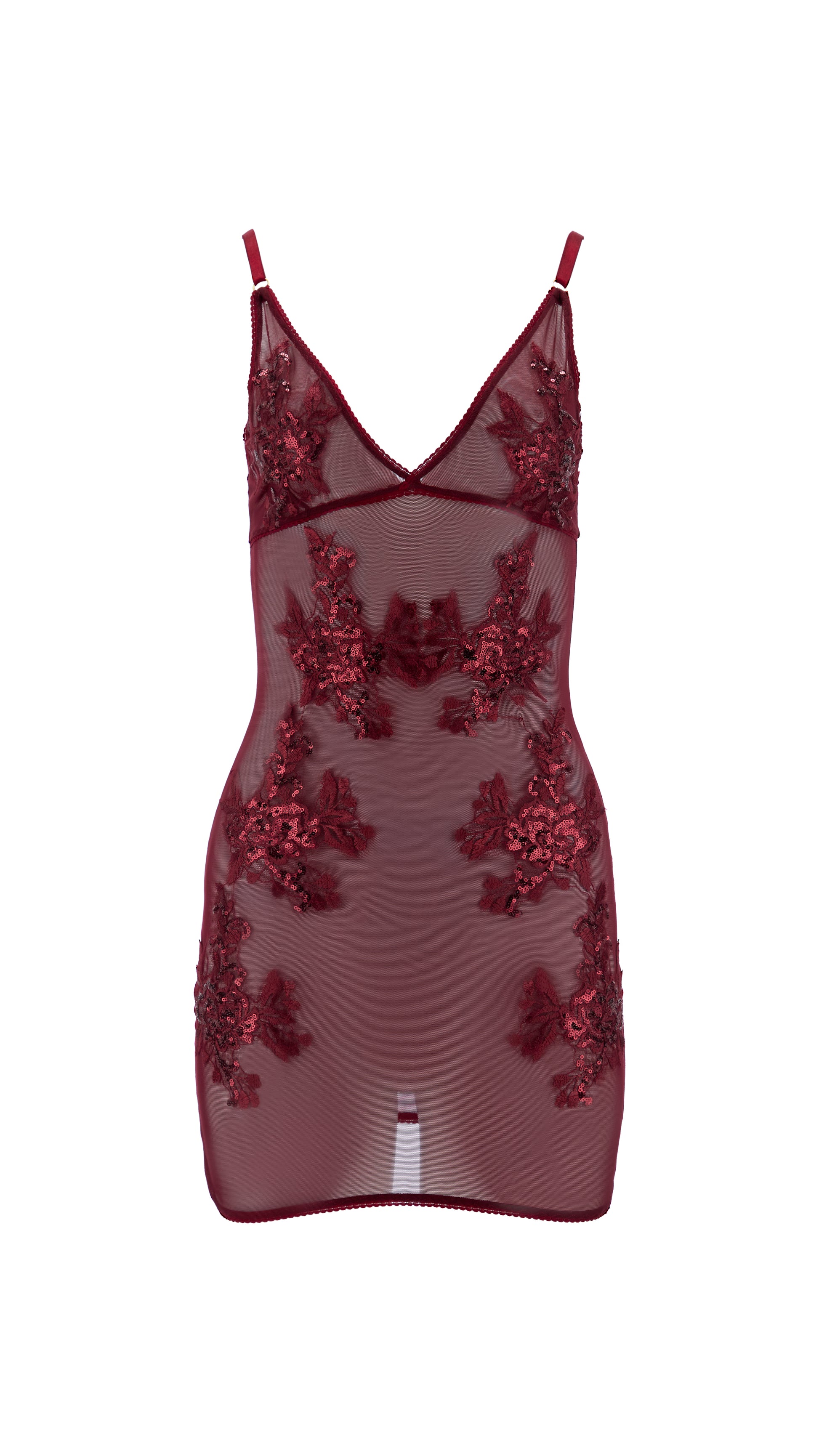 As the night draws in, choose the Urania babydoll for a sensual yet sophisticated look. This designer red wine dress features beautiful bespoke sequins appliqué that blends in the sheer stretch mesh…