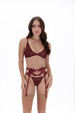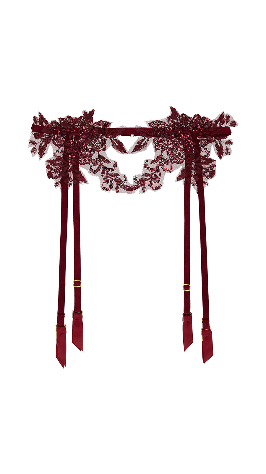Finish off your luxury lingerie look with this seductive Garter belt which showcases the true craftsmanship offered by The Muse Lingerie. Bold red wine appliqué features at the front and soft satin elastics around the waist for a luxury touch. Adjustable straps ensure the wearer can create the perfect fit.