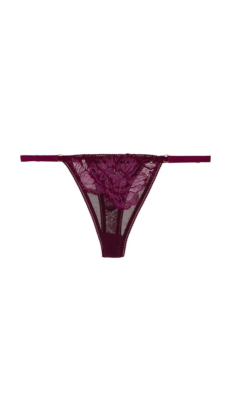 Update your lingerie drawer this season with the Victoria Italian satin Strap Thong which has been carefully crafted to ensure a flattering fit. The silk straps gently grip the body, holding in place the beautiful stretch mesh and lace featured at the front of the thong on sheer mesh in the back